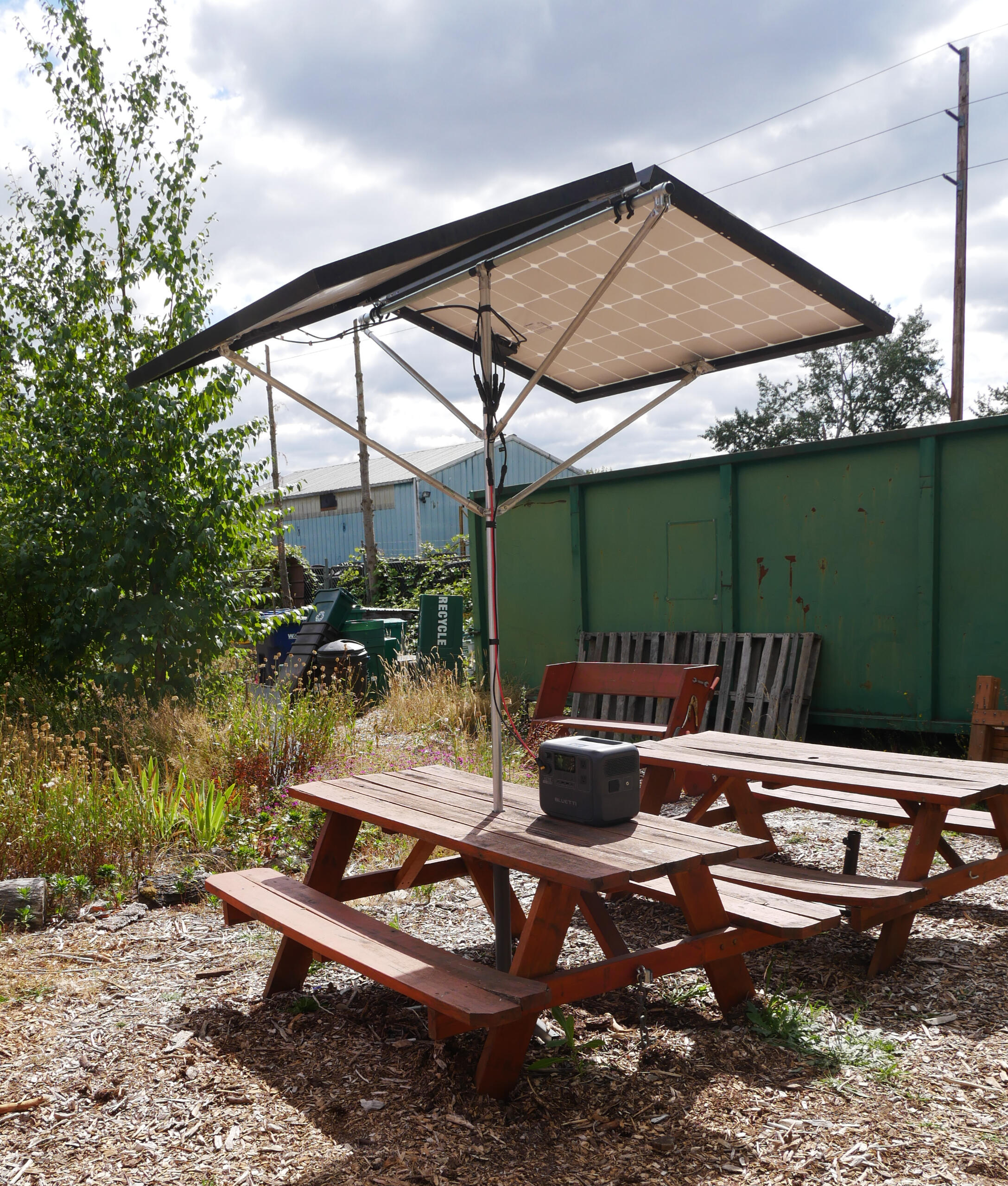 South King Tool Library Solar SunshadesInstalling reused solar panels on picnic benches plus a connected battery and ports for device chargingRevolve Solar partnered with the South King Tool Library to provide their patrons with shade and device charging. This portable solar system also serves as an educational tool and an asset during the many community events hosted by the tool library.