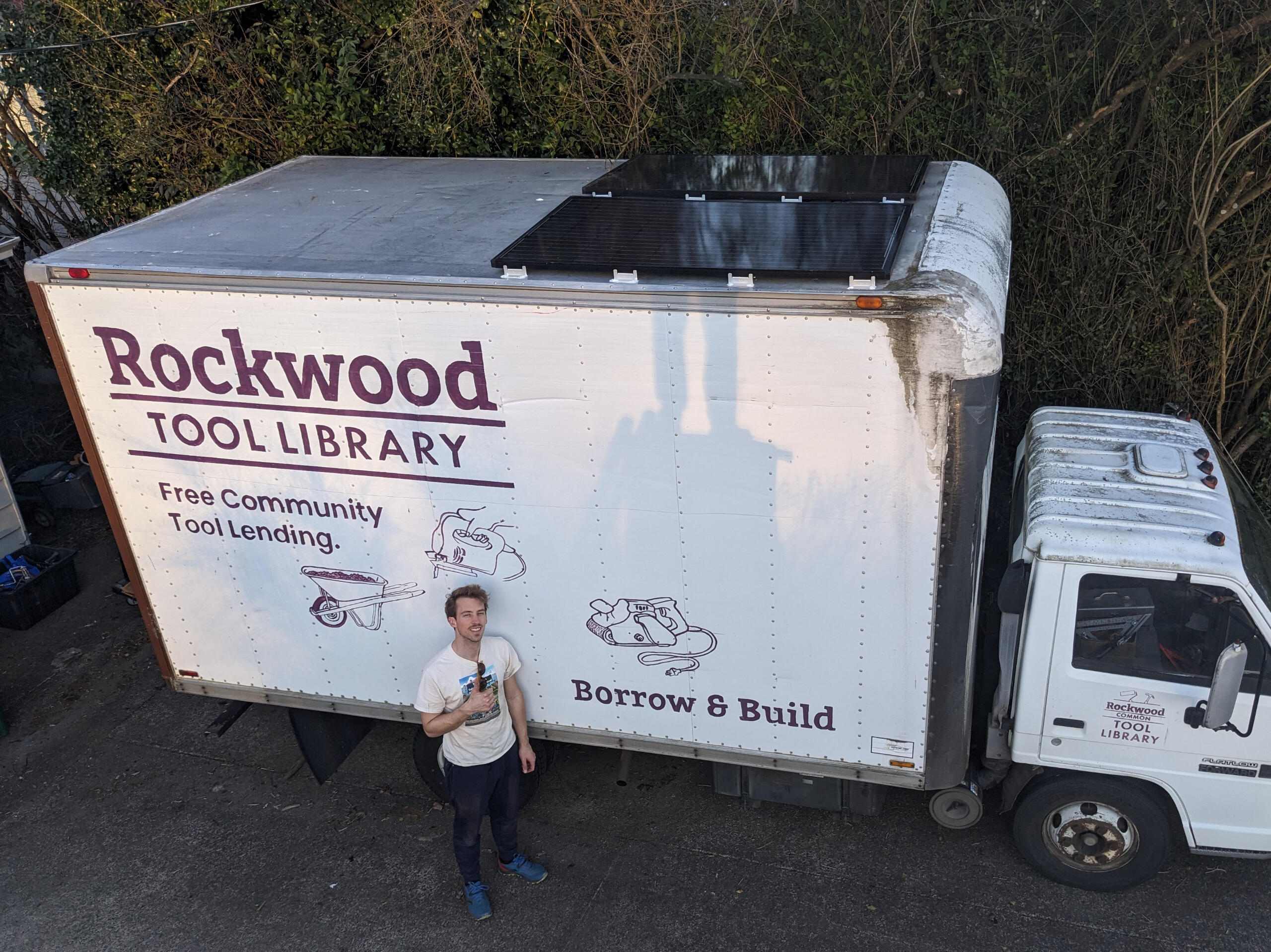 Integrating Solar with the Rockwood Portable Tool LibraryRevolve Solar integrated clean, free power on top of Rockwood Common's mobile tool library. The traveling lending program now provides Lend & Learn power tool demonstrations and supports community programs at events with plug-in electricity. The off-grid portable power source is also registered with multiple resilience networks to provide disaster response in East Multnomah County.